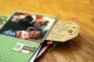 I decided to hide my journaling behind the photo on this page. I did this for a couple of reason. The biggest reason was because I wanted a bit of white (green) space. A bonus was that it helped to hide the number five on the next page (since it sticks out). I wouldn't have liked seeing the back of the number 5 and would've felt like I had to cover it up! Here's the hidden journal...