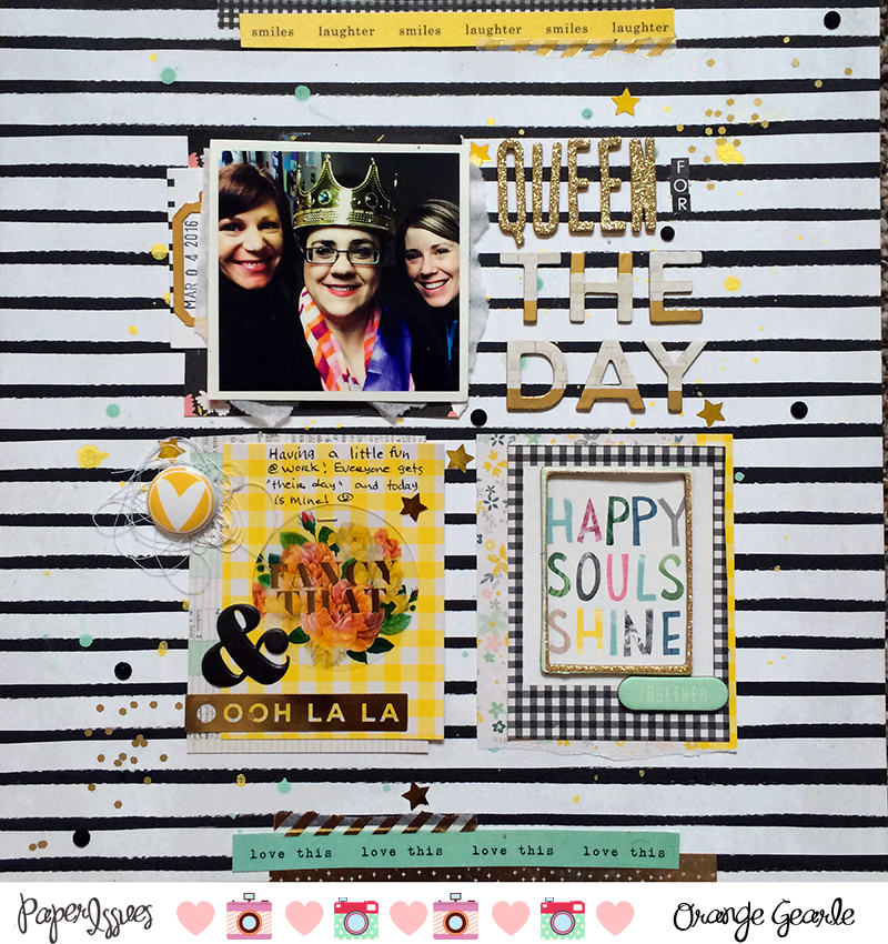 I used items from Pink Paislee's C'est La Vie collection and some bits from Maggie Holme's (Crate Paper) Bloom collections. Get either of those and so much more from the Paper Issues Store and use the code 'orangegearle' for 20% off your entire purchase!