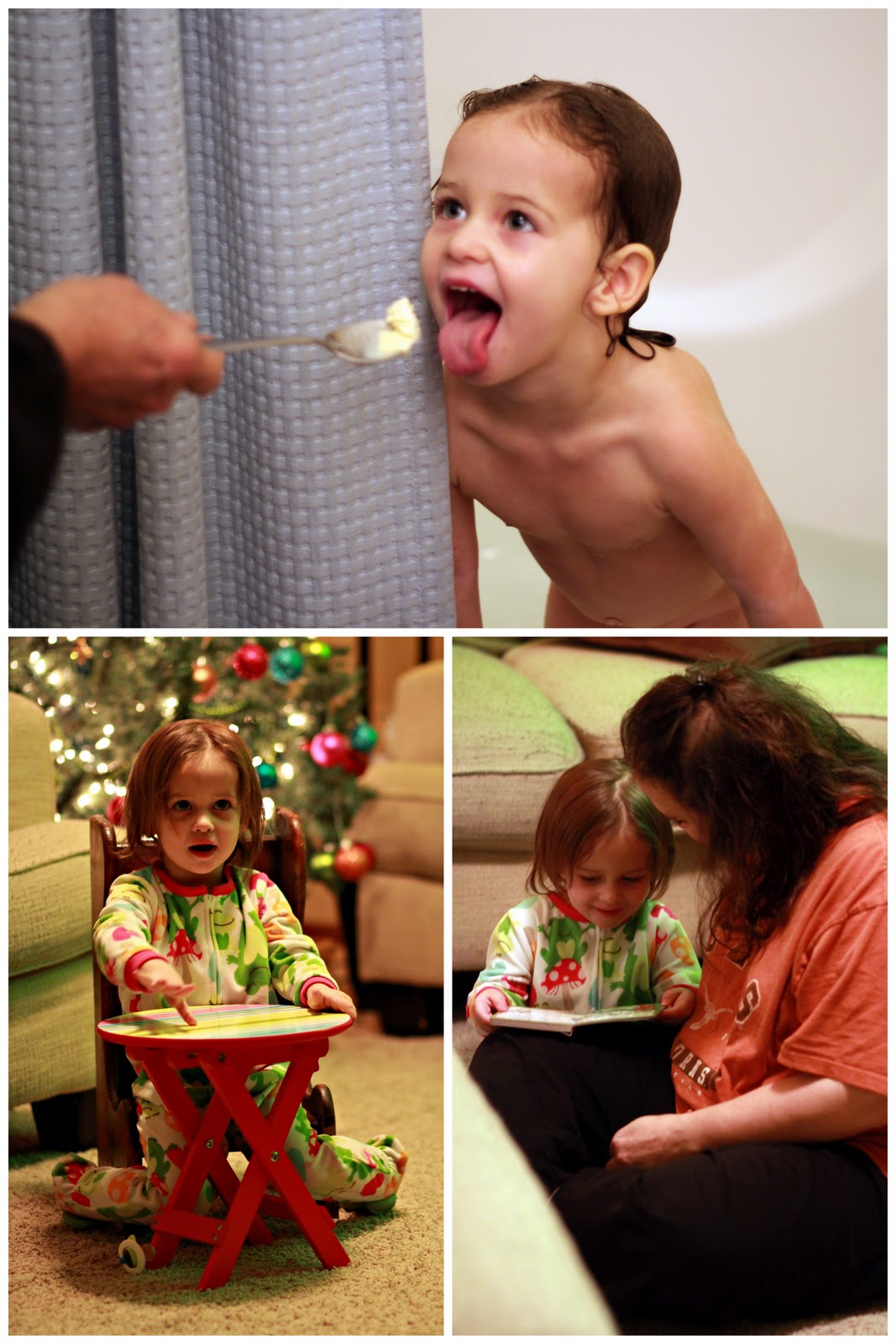 We put up the tree and hung the stockings.  You'll have to wait for those pics, as I haven't had time to go through them much yet (and there are quite a few). (I like how I say "you'll have to wait" as if there are people waiting on pins and needles to read this stuff -- especially since I only have one follower -- well, two if you include me -- Hi Julie)! Here are the stories: