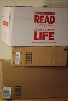 The rest of the books I ordered for our new family tradition came today!  Yay!  Now to wrap them and make the tags for them!  Also in the box are the books that I ordered to give as Christmas presents for my daughters, son-in-law and our nieces and nephews.  Also a yay!  Three other packages came today, one for my soul mate and two for me.  They are mostly gifts for the girls (M. and B.)!  Lots of wrapping to do, and the tree isn't even up!