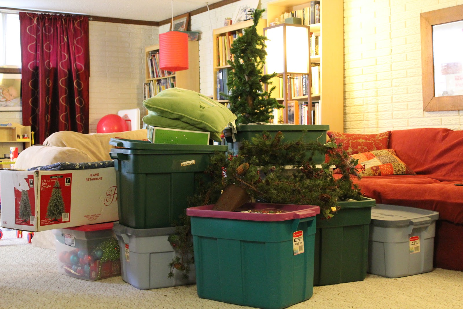 1.  We had a light emergency!  None of the strands we used last year worked!!!  Luckily my mom just purchased a lighted tree and was trying to get rid of the lights she no longer needs so she ran them down to me!  Whew!  Thanks Mom!