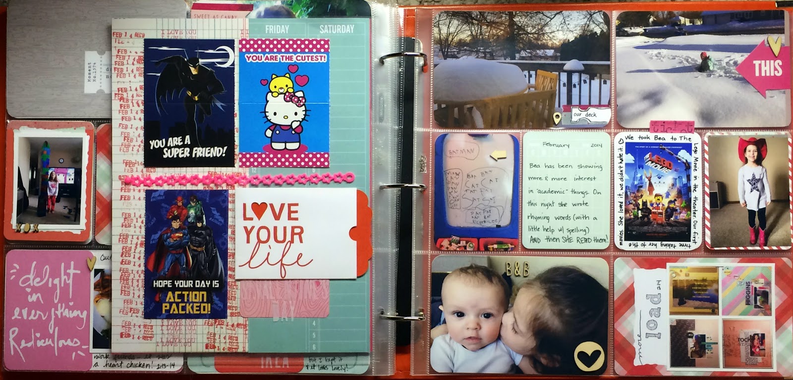 I had several "portrait" photos this week -- and in some cases, about the same thing, but I couldn't decide on a photo -- so I made a little extra room by adding some washi tape at the top to create a flip up (best part is that there is also room to journal on the back of the front photo)! I did this TWICE this week!