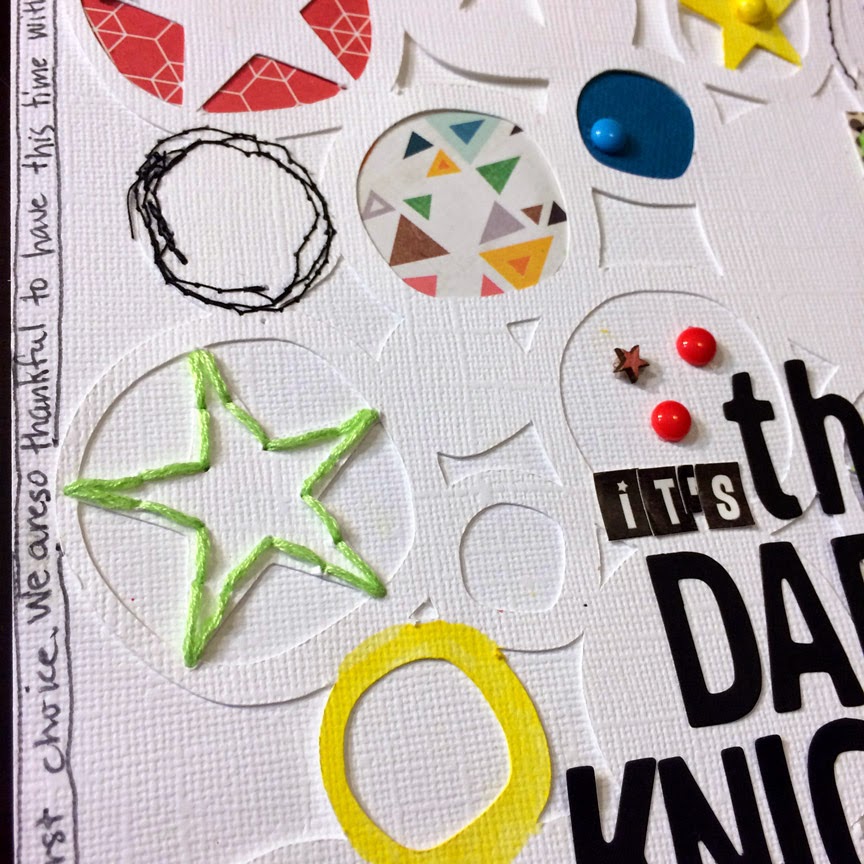 The circles are a cut file that came with the class (one of the things I always love about classes are the "free" things that come with it like printables or cut files)! I cut it with the Silhouette Cameo and then found various patterned papers to back several of the circles. I also used Gelatos and a water brush to paint a few of the circles, stars, and wood veneer pieces.