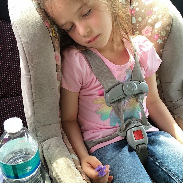 I want to remember that Bea fell asleep on the way to G'ma and G'pa Braun's house, while still holding the flower that she had picked for her grandmother.