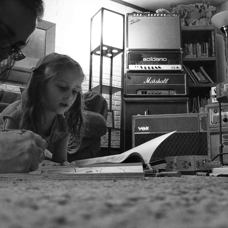 B. was extra tired tonight. It was beautiful outside and she wanted to be inside. She wanted to do more quiet activities than her usual dancing, climbing, jumping and running. She also had more than one accident today, and says she isn't feeling well. So we just kept it lo-key, played a game or two on my phone, and then we listened to some music.