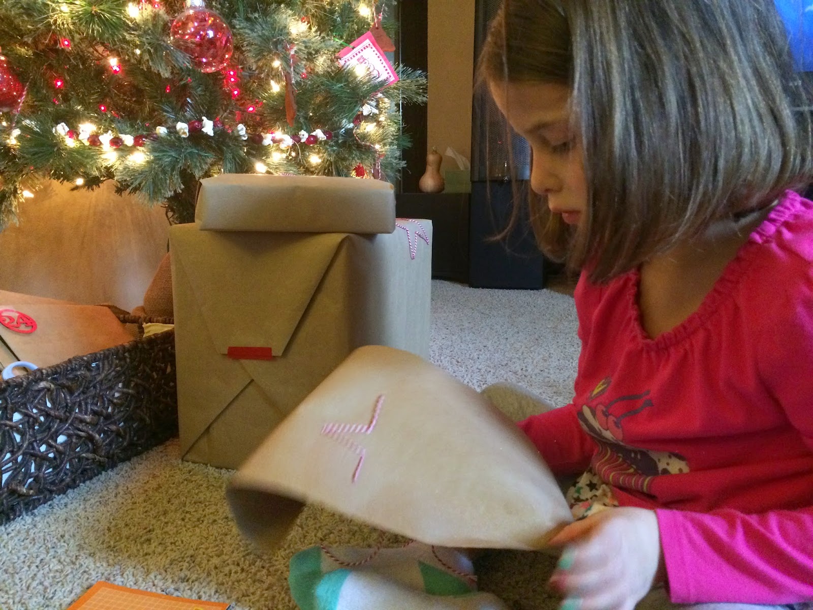 An abundance of stars have joined us in our house this season! On several of the packages, I stitched a star on the wrapping paper before wrapping. Bea has enjoyed this, and wants to help. She has actually become fairly skilled at stitching stars.