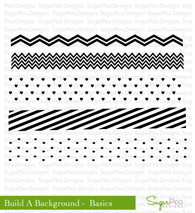 The SugarPea Designs product that I used is a clear stamp set called Build a Background - Basics (pictured to the right). These stamps caught my eye because I thought they would be perfect for art journaling, mix media layouts, and to use in my planner! For the challenge, obviously, I chose to do a layout. I used both of the chevron-looking stamps (top two) with paint and with ink! I even got to use my small Geli Plate when working with the paint and stamps together! So. Fun. Here are a few close ups, which include the story: