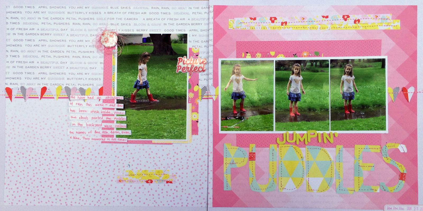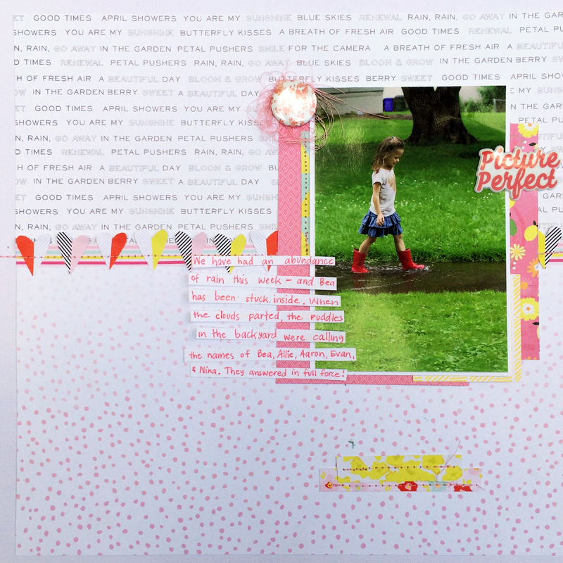 See the glare? ;-) It is so difficult to photograph a transparency! I created the "today" book mark from some flamingo transparency paper (because. flamingos.). Most of the strips of color that you see aren't washi (there is some in there, but not most of it). Most of it is from this vellum 12x12 sheet that is part of the WP Hall Pass collection and still available in the store. This is the first time I've tried that, and I like the way it looks. Don't worry, I haven't abandoned my washi. The books you see on the first day of school, and the other flower paper are both cut out from patterned paper in the same collection.