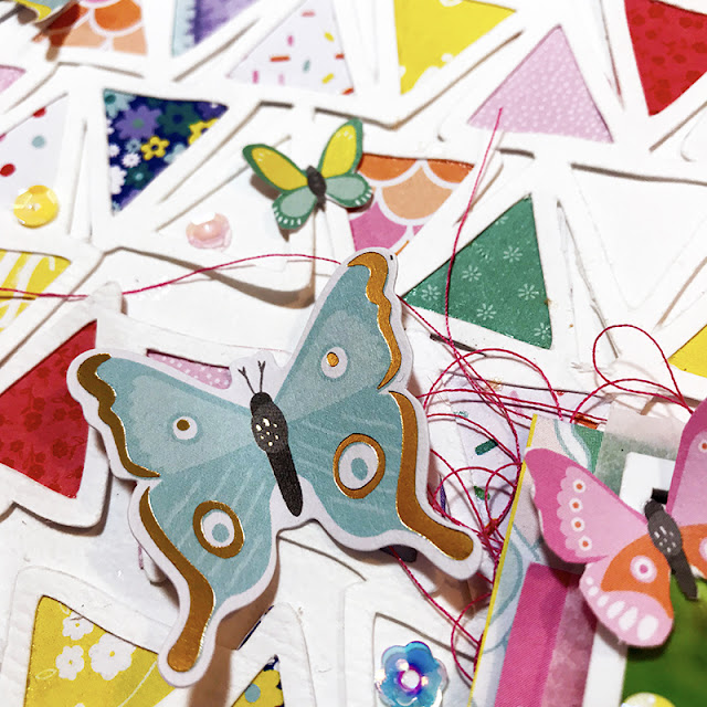 So for this layout I cut flowers from white card stock and leaves from one of the patterned papers in Crate Paper's Wild Heart collection. I backed the flowers with yellow, pink, and coral papers from the same collection.