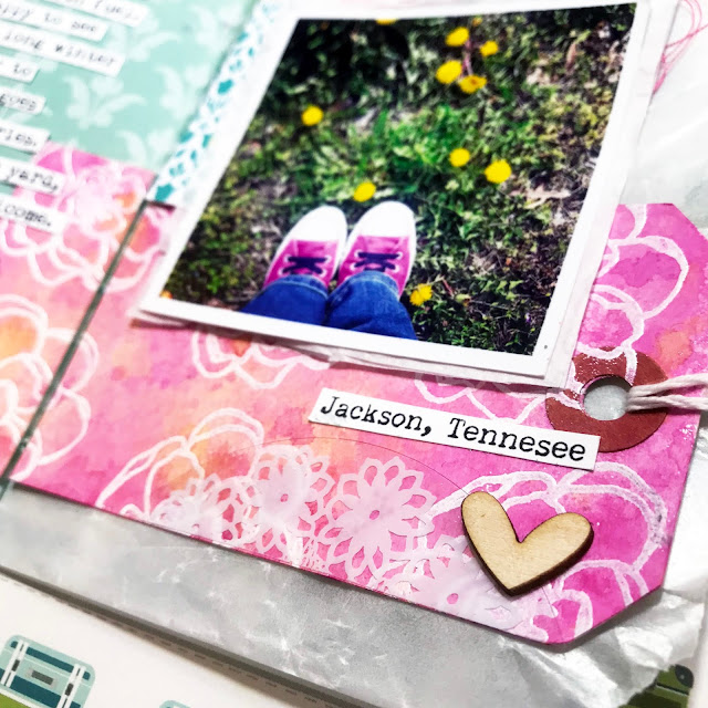 For the photo side of my spread I started with a great heart background! These cut files are made just for a TN -- the perfect size and the perfect way to jazz up the page and add some interest. There are several to choose from in the Love Rules TN cut file.