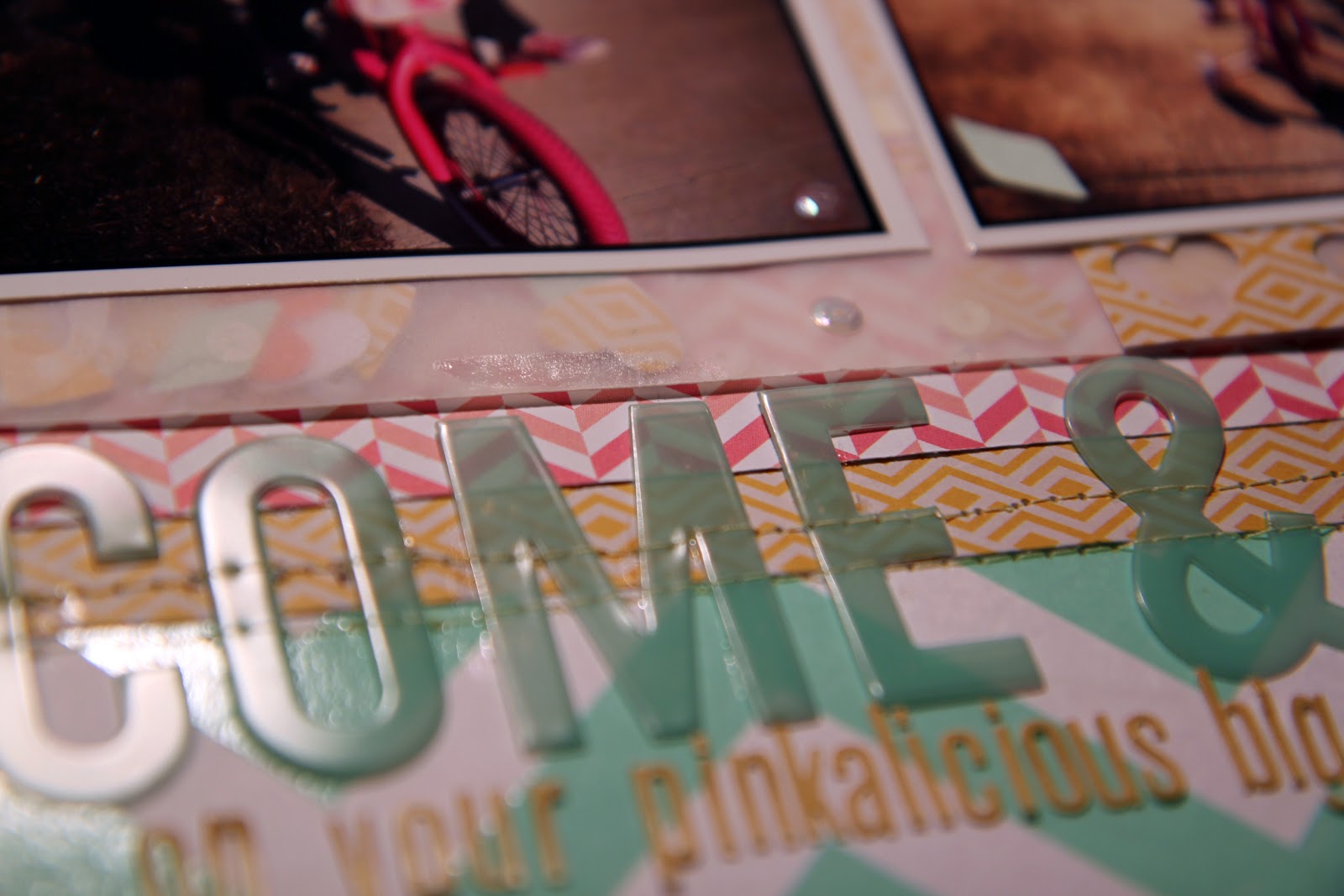For this layout I used a sketch by the great Audrey Yeager. I am not posting it because I got the sketch through a class that I am taking at My Scraps and More, and I'm not sure if I can share it (I paid for the class and I'm not sure about the sharing rules)!My journaling is hidden, and there are way more than two sentences. :-) (I've never been accused of being at a loss for words). The story I am telling is about how B. got the bike for Christmas and it was way to big for her. And now, just a few months later, we had to raise the seat! She just keeps growing!