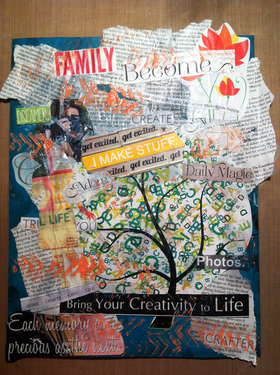 Over the last month I have been on the look out for items in magazines to use for this project. Then over the last week or so, I've been ripping them out. Although I would say I am a visual person, everything that spoke to me, that seemed to want to be used, happened to be words! Well, almost everything. I think that's part of why I put off this project a bit. I was certain it wasn't going to be all that interesting. Although, I'm still not sure it's interesting, the process was fun. My hands (and craft mat) got dirty and it was just overall enjoyable.