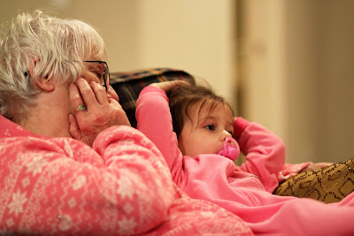 Finally, today is Gwamma's birthday. Among other things, Gwamma got soft pink jammies for her birthday and I got photo four for my 365 project.