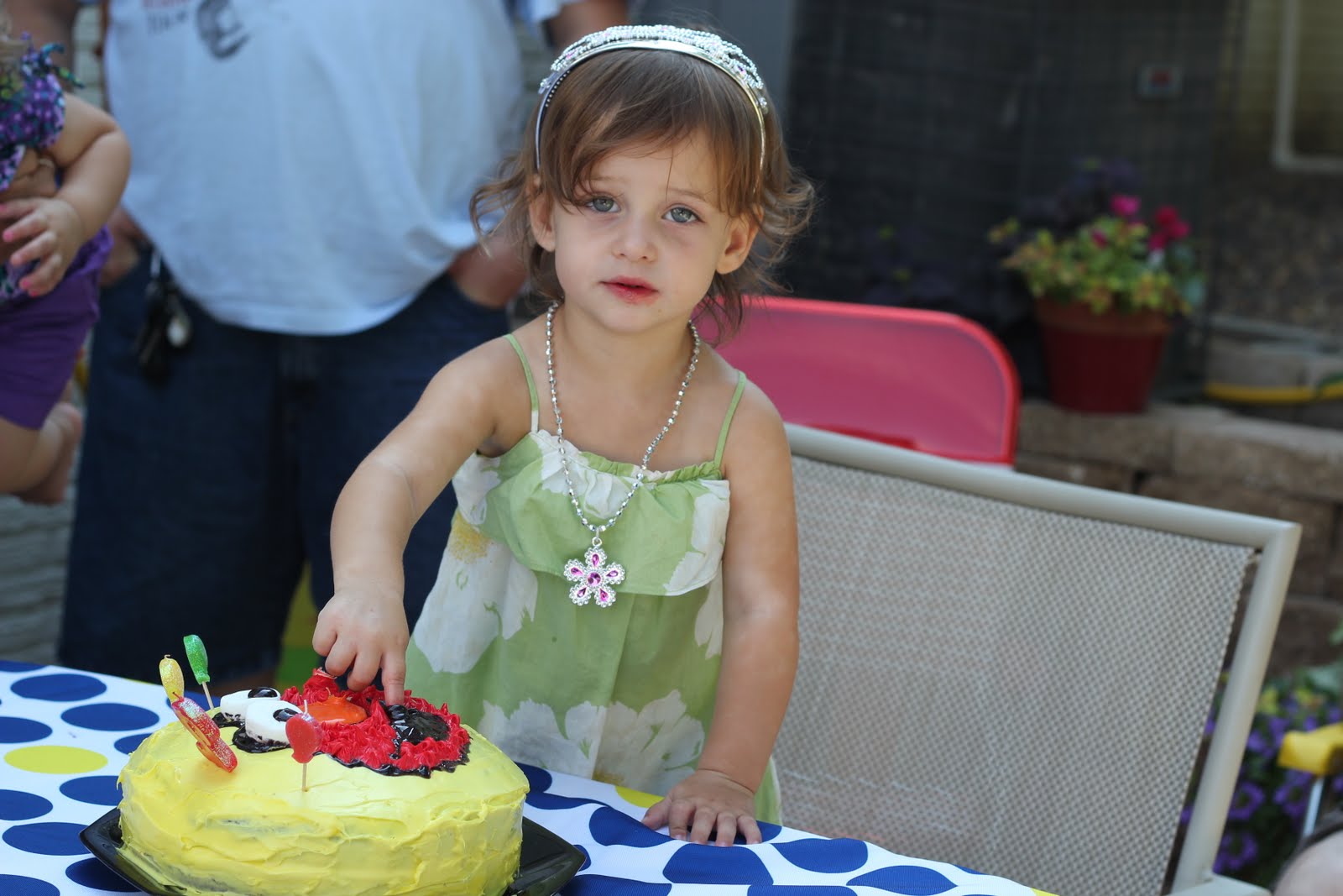 Kids started back to school on the 18th, and we also didn't have our regular daycare provider on that day and several days following because she was out of town. We knew in advance, but the lack of a regular routine and schedule does tend to throw everything off. My mom was able to babysit her 3 of the 4 days (thanks Mom!), and Charlie stayed home the first day. Friday, the 19th my mom (thanks, again) took her to the doctor -- pink eye. But she seemed fine on her birthday. Here are a few picks from the day, more on flickr.