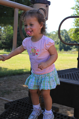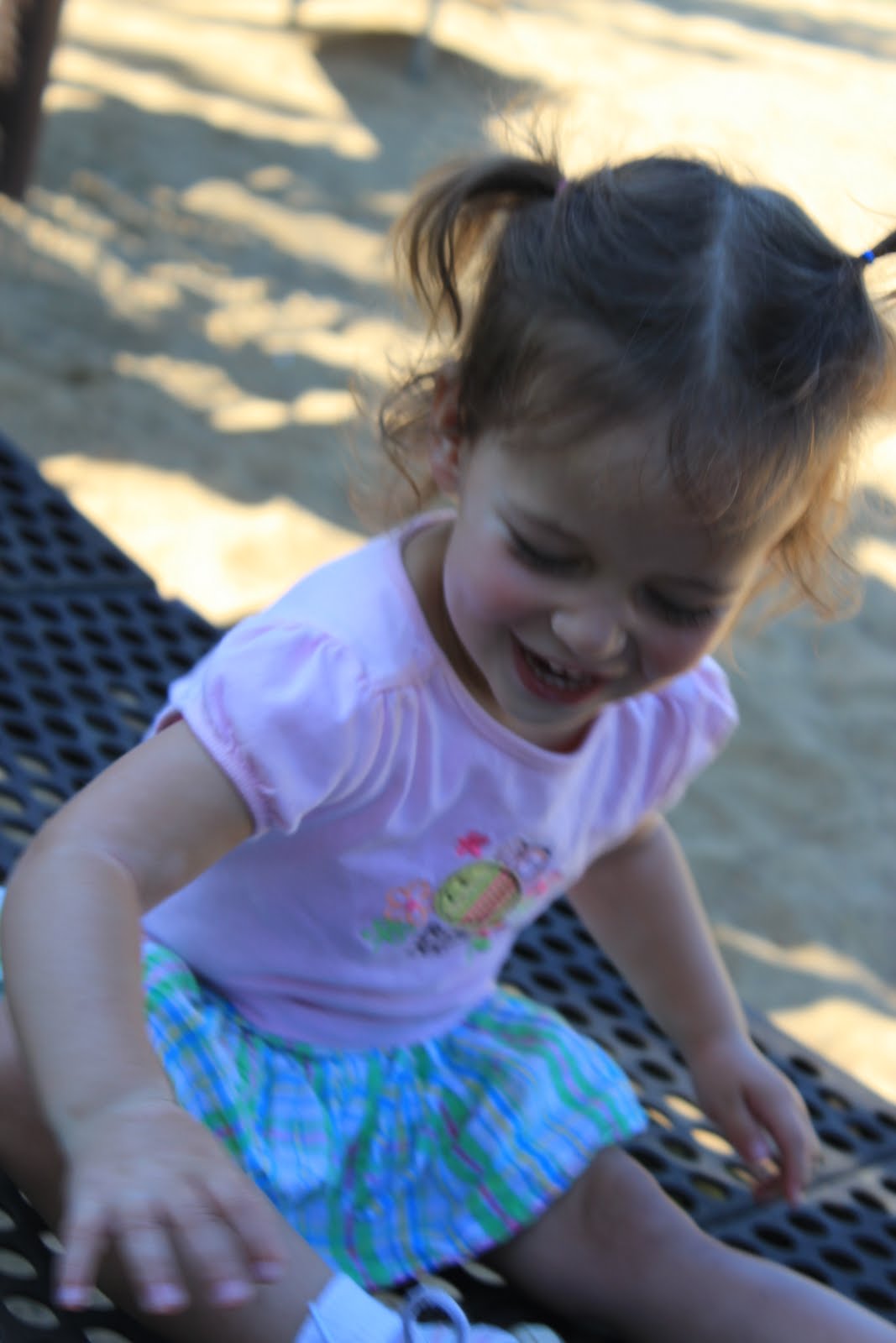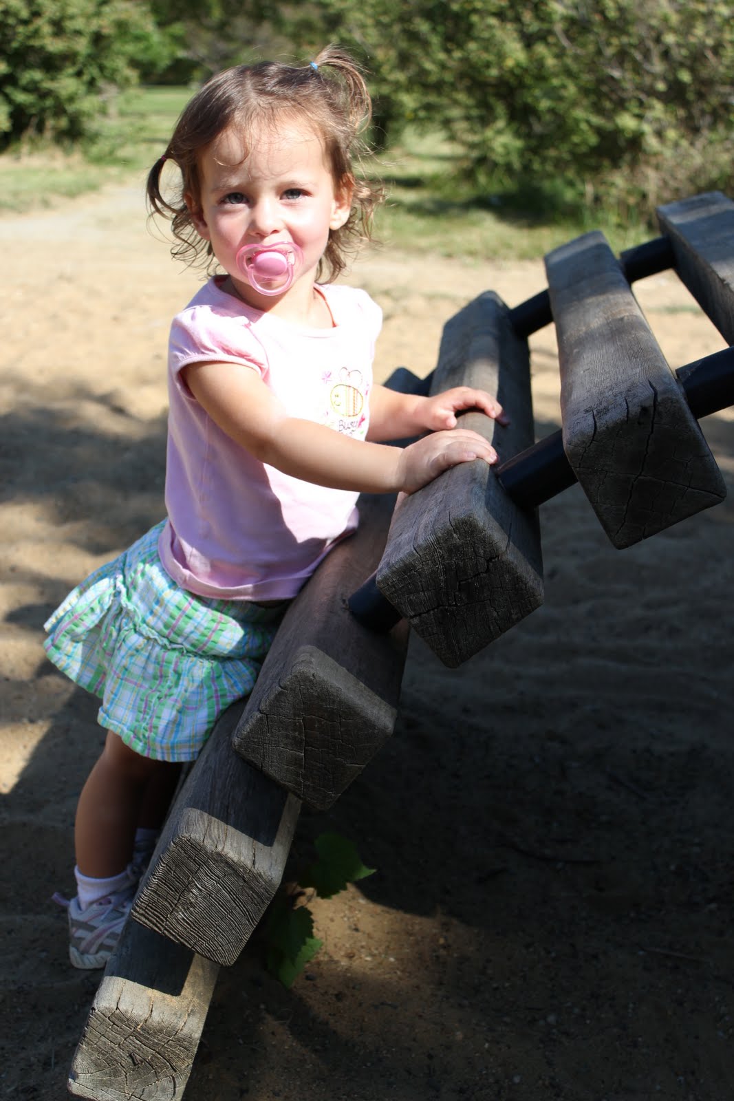 Another great thing about this camping spot is the playground.  When B would get bored, we would take a little walk and play on the toys.  Once again, these photos remind me of how unbelievable big she has gotten!