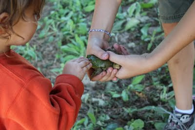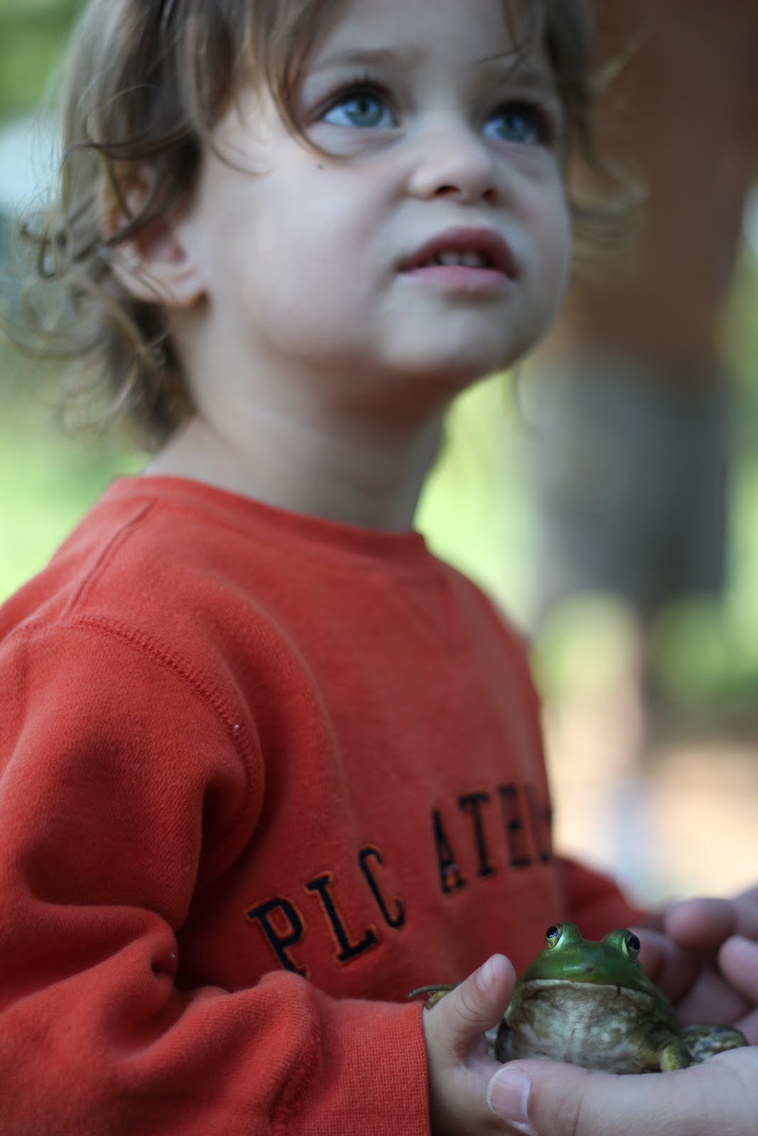 We saw a deer the first night we were there.  Then over the next two days we had encounters with a snake and bullfrog.  B. loved them all!!