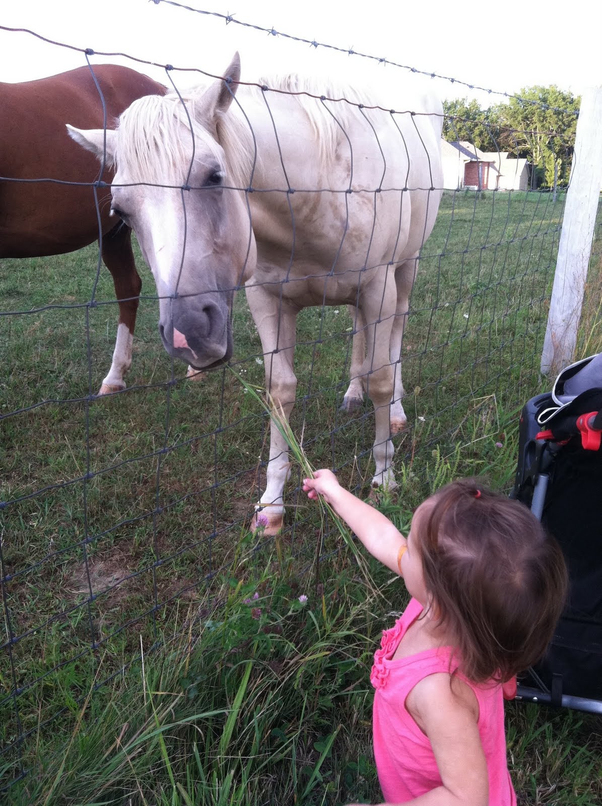 Today B. and I went on a short walk. Although we live in town, there is a family farm across the street that must be grandfathered in because they have a couple horses. We don't often see them out and about, but today was an exception.