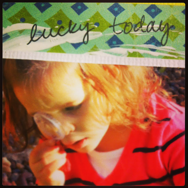 These photos were taken last April.  B. had gotten a bug kit (net, magnifying glass and cage) for Easter and we took this lovely day to go outside and explore. The journaling (that is written in the circle of paint) reads, "You are so curious!  I love watching you learn about the world. We got lucky today and found a bunch of different kinds of critters.  You are quite the scientist.  The Easter Bunny brought you the perfect toys!"